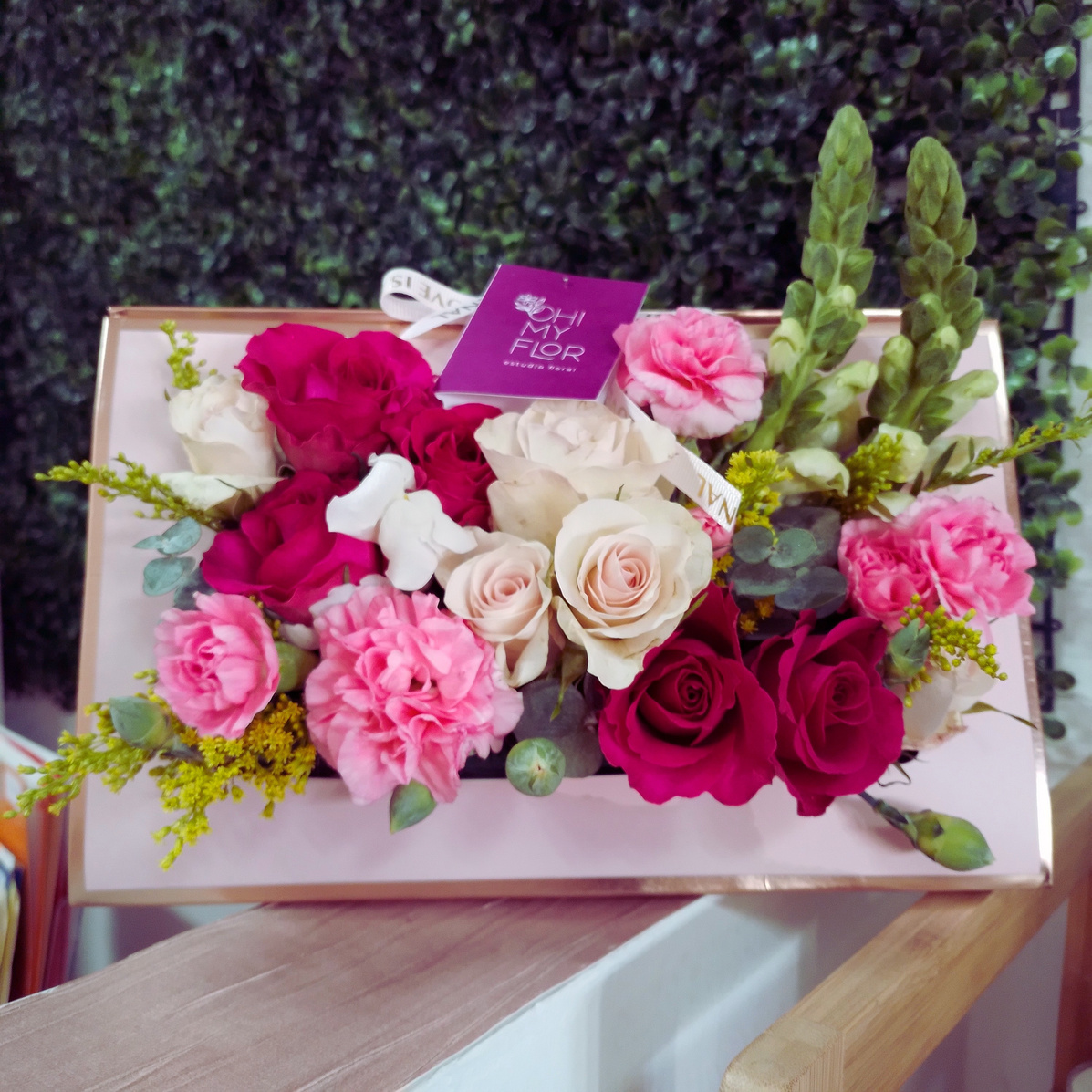 Los arreglos presentados en las imágenes pueden variar ligeramente en cuanto a la forma, tipo de base y accesorios, debido a la temporada y disponibilidad. Oh! My flor , se compromete en lo posible a igualar o mejorar el arreglo, siempre en beneficio del cliente.